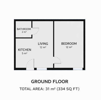 Ground floor, 1 bed flat. \nAvailable from 27 April