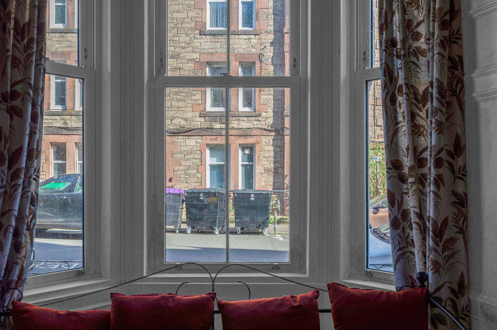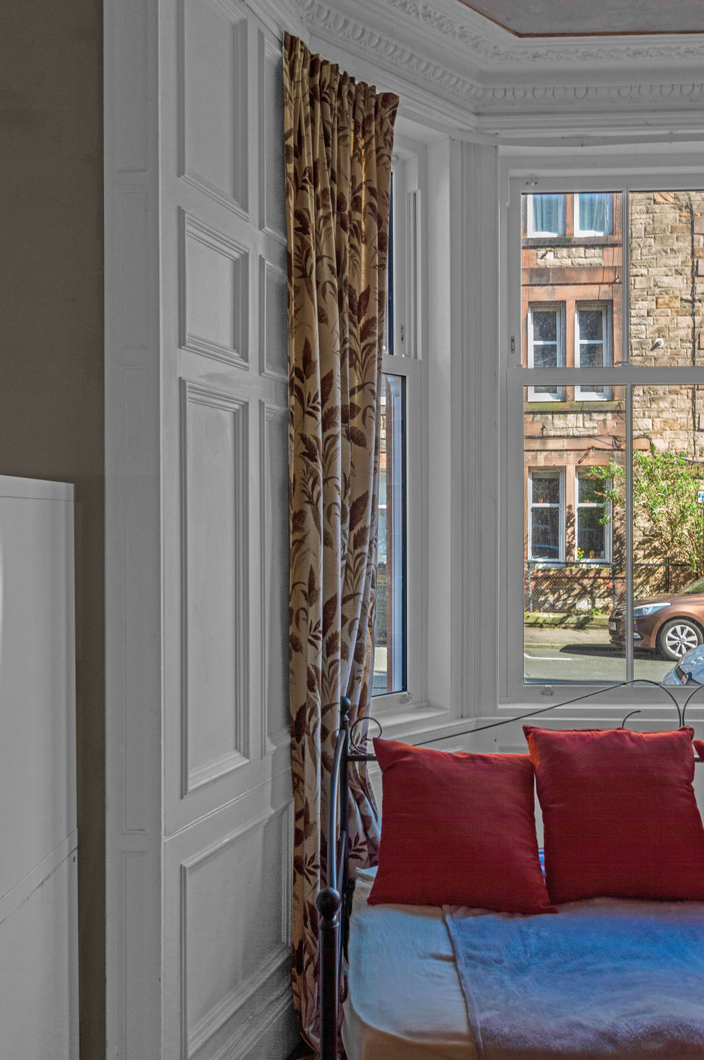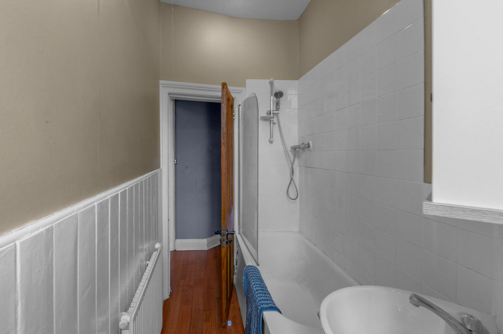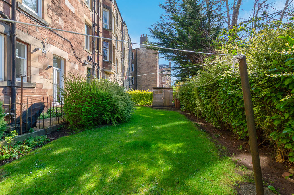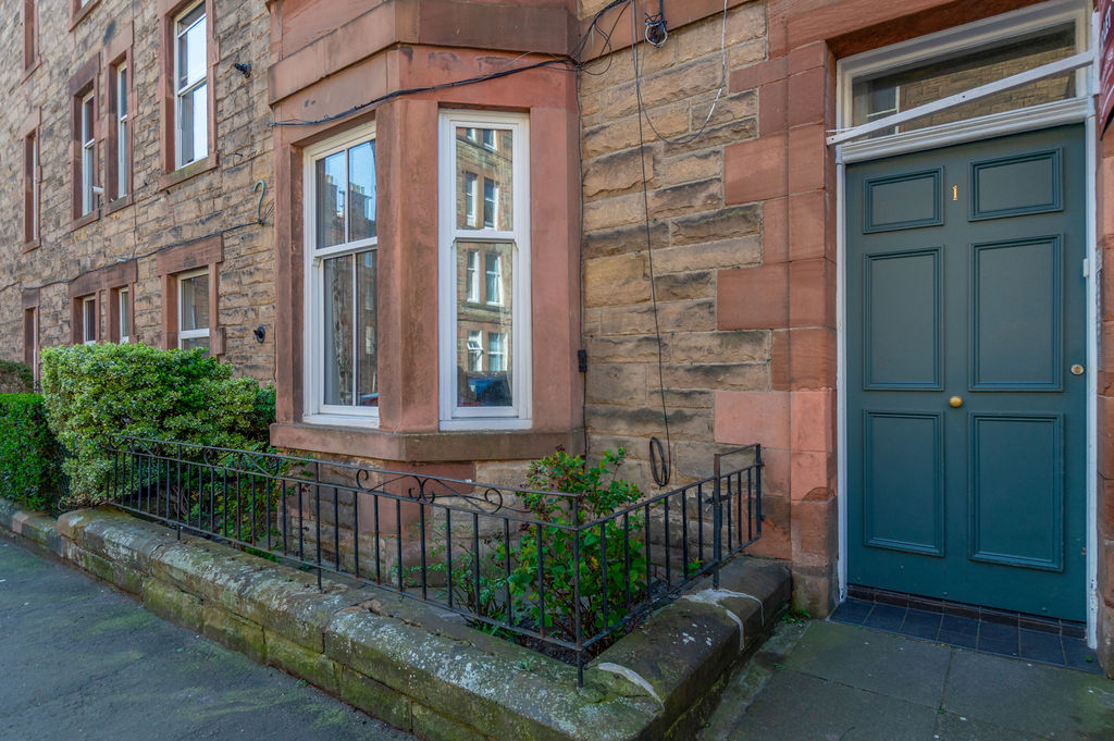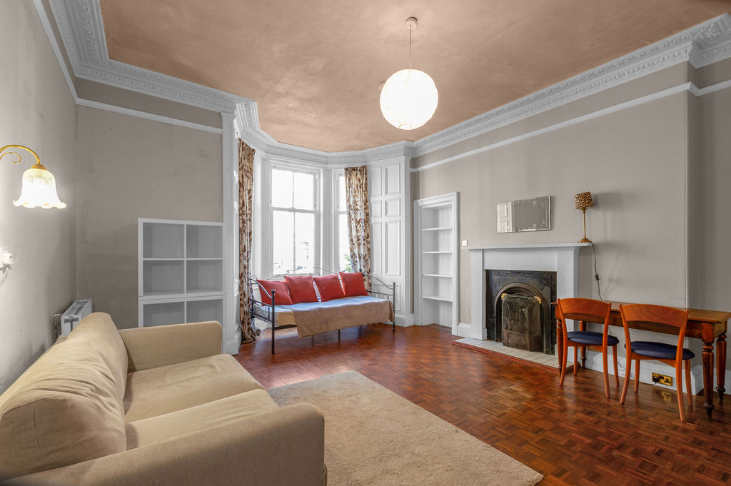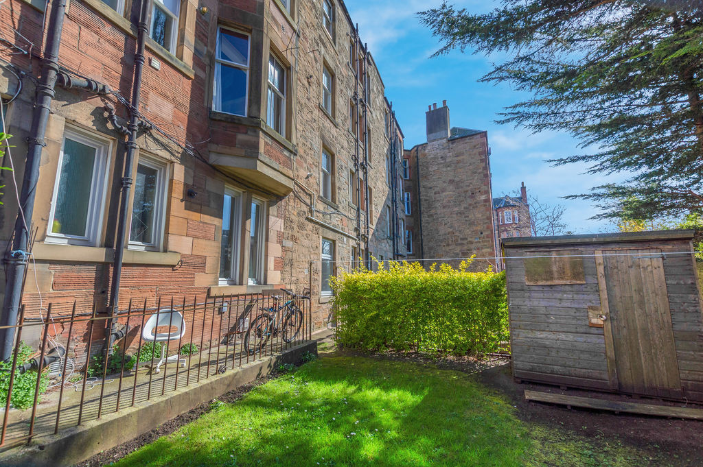 Boasting one of the capital’s most prestigious central addresses, this delightful ground-floor two-bedroom, two bathroom tenement flat lies in the heart of bustling Morningside, within strolling distance of shops, bars and eateries, scenic open spaces, and city-wide transport links. The well-presented home with access to sunny private and communal gardens enjoys beautifully enhanced by an array of enchanting period features and is double glazed.\n\nThis two-bedroom ground floor flat has a Large living room with period features, fireplace, a natural wood floor and a bay window with sash and case double glazed windows, both bedrooms are at the back overlooking a small private area and a larger well maintained communal garden. Both bedrooms are carpeted, one with an ensuite. The main bathroom is off the generous hallway which includes in built shelving and a large storage cupboard.\nOutside front and back there are small private gardens and a shared rear garden. Residents permit parking is available on-street.\n\nAccommodation\nEntrance Hall, Living Room, Kitchen, Two Bedrooms, Two Bathrooms.\n\nOutside Space: On-street permit parking, private front and back garden and large well maintained communal garden.\n\nLandlord Registration Pending
