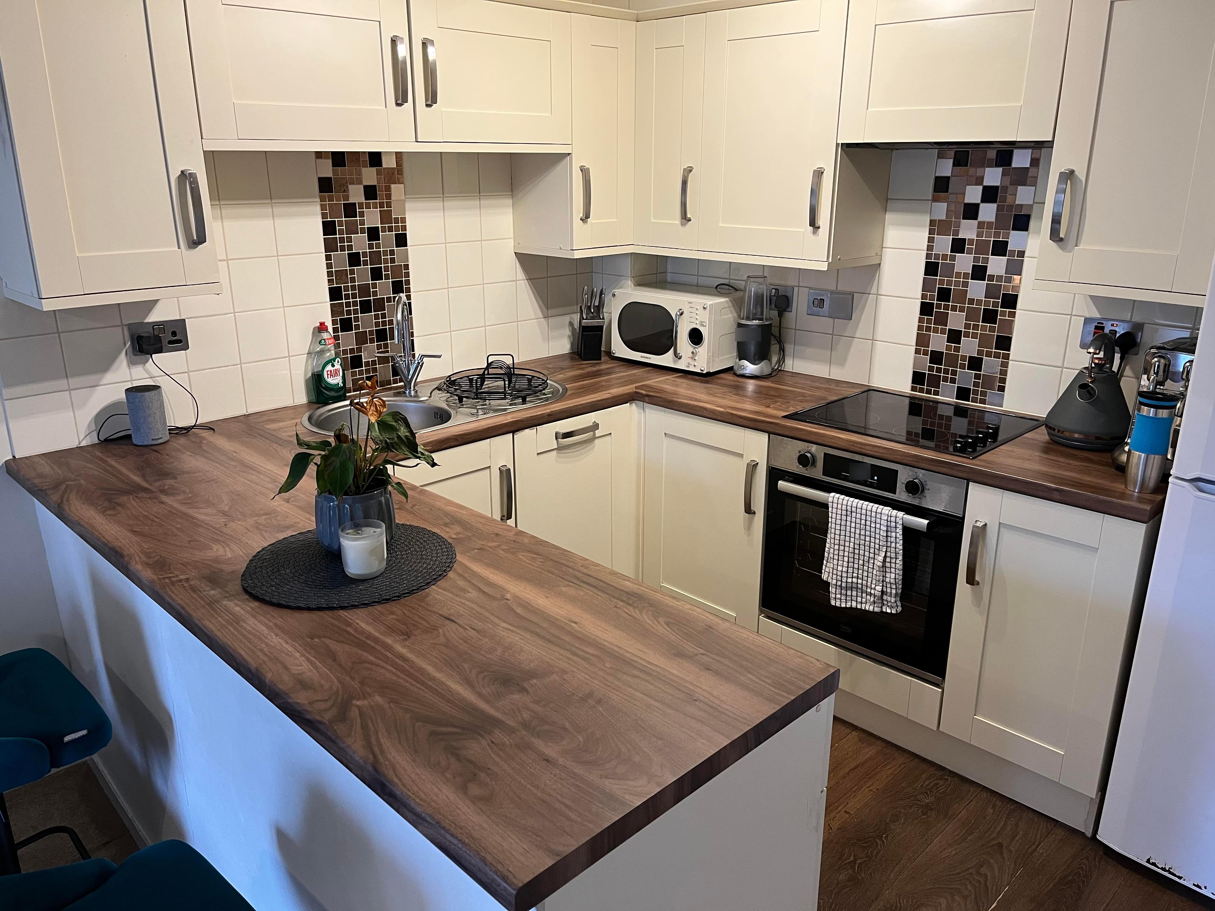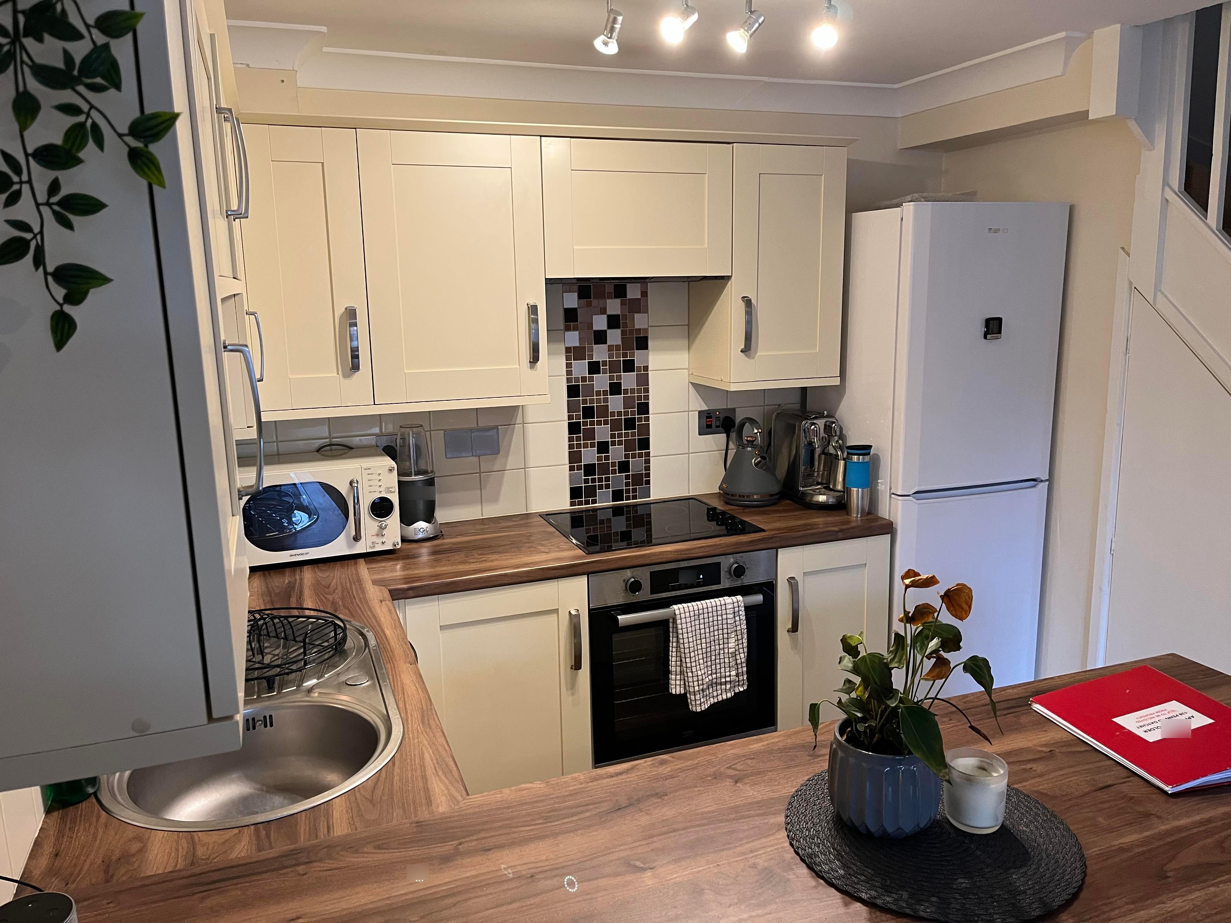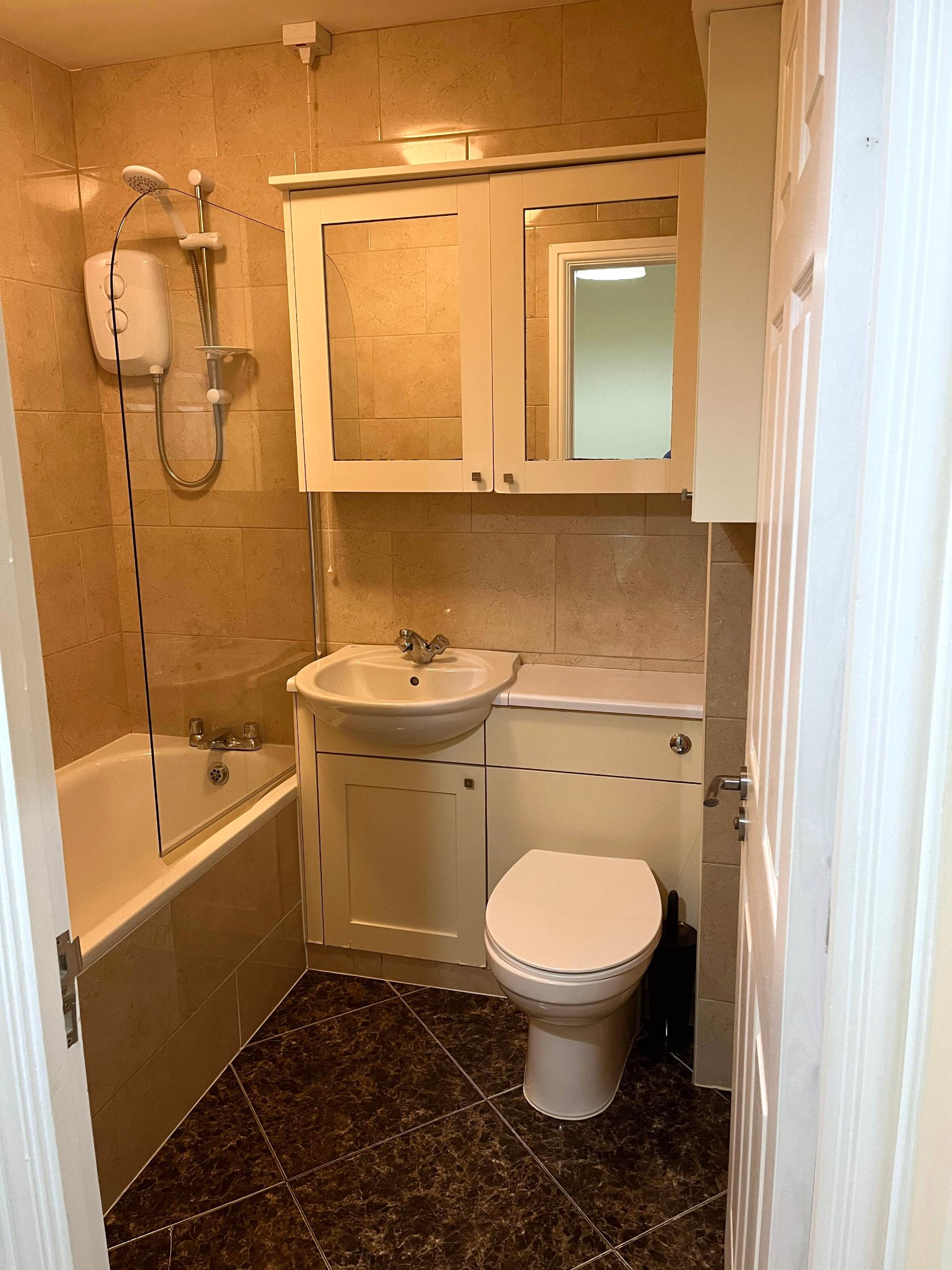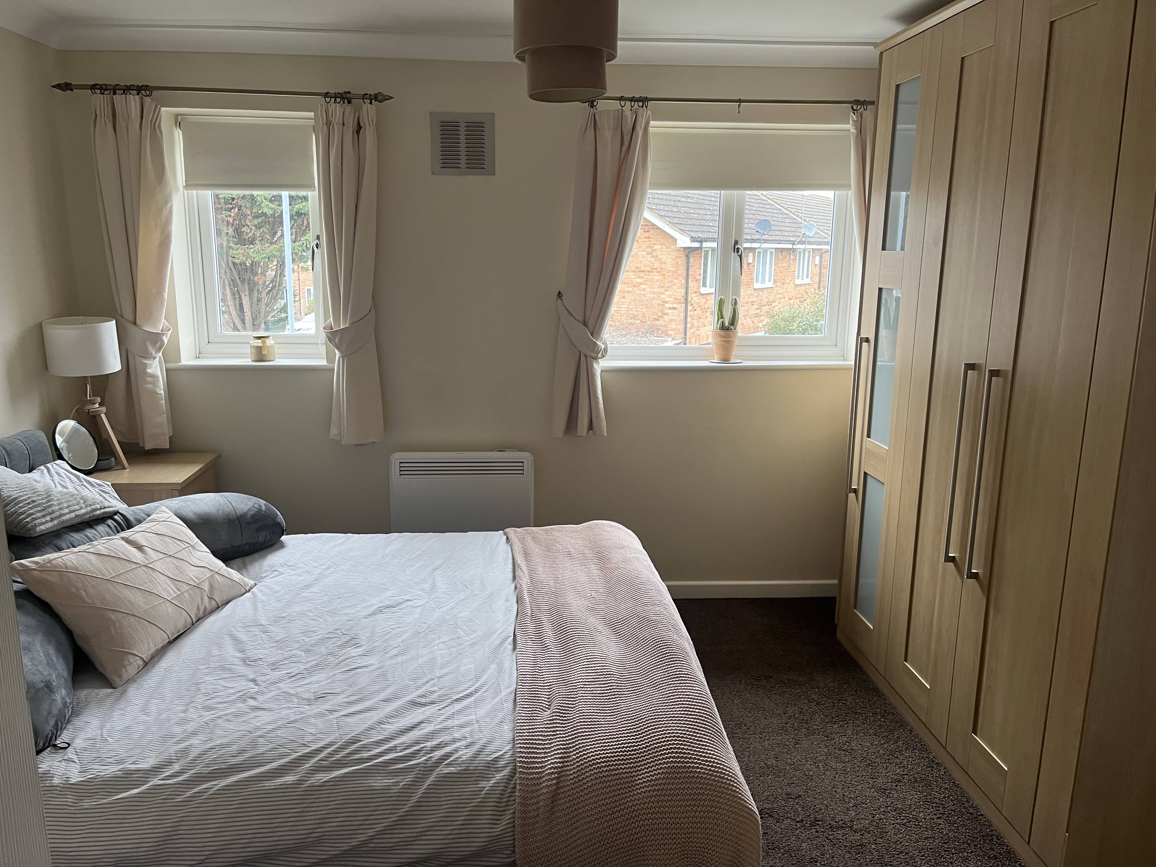 A well-presented, modern, and comfortable one-bedroom home situated in a quiet and highly sought-after area of the popular Penn Road development, in the charming riverside village of Datchet. The property has been thoughtfully upgraded over the years, offering a stylish and practical living space.\nThe ground floor features an open-plan layout with a carpeted living and dining area flowing into a well-designed, upgraded kitchen. This space includes a matching breakfast bar, generous worktop space, ample cupboards, a halogen hob, a new oven, washer/dryer, large fridge/freezer, and an integrated dishwasher. A useful understairs cupboard with lighting and shelving provides additional storage.\nUpstairs, the landing offers loft access and leads to a fully tiled, modern bathroom with a shower over the bath and a contemporary suite set within built-in cabinets. The spacious bedroom benefits from extensive fitted wardrobes and drawers.\nThe home is equipped with an efficient, fully controllable electric heating system and good insulation, contributing to an EPC rating of C. Outside, there is a low-maintenance front garden, additional storage, and two allocated off-street parking spaces conveniently located near the entrance.\nThe property is managed directly by a friendly, professional, and established local NRLA-accredited landlord, making it an ideal home for a single occupant or a couple.